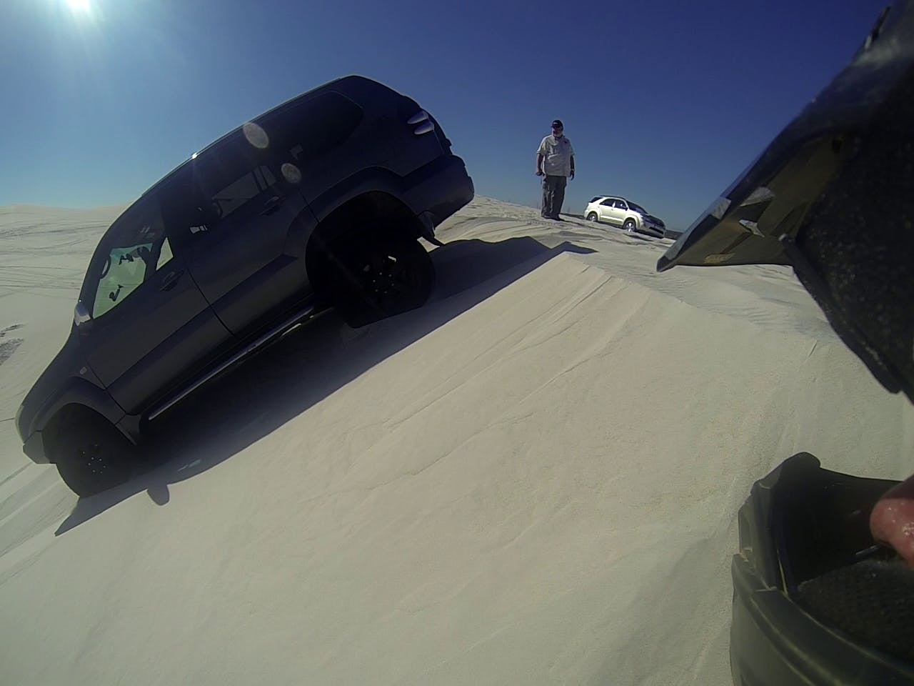 Getting to the meeting spot seemed challenging for some. Strangely a Prado was having a real challenge getting to the debriefing location just a few meters in from the entrance to the dunes themselves. Tony jumped into the Prado and showed the first timer to the dunes just what a Prado is made of.