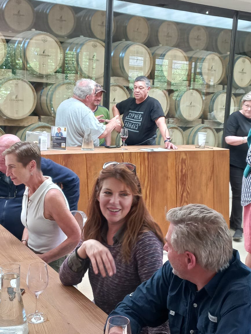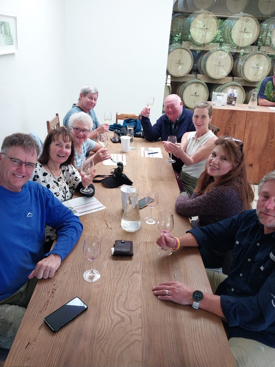 We wound our way down and through Wellington to our next destination – Wine Tasting at Wellington Wines. This turned into what could be called ‘Wine Loitering’ instead of ‘Wine Tasting’ – as the wines were most pleasant and we eventually had to round up the troops. We must also mention that some of our members opted for coffee and cake instead of the wine tasting – who knew carrot cake and coffee could go head-to-head with wine tasting and actually hold its own!!
