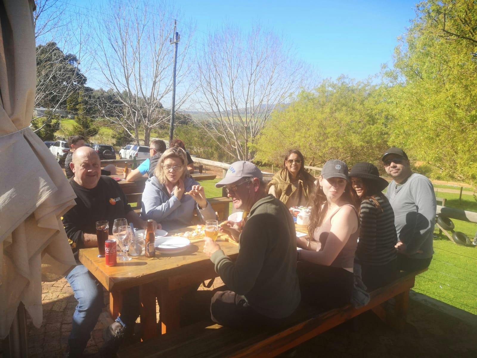 Once back with the group the convoy proceeded to the entrance gate. Prior to exiting some members pumped up their tyres. The attendees then proceeded towards the Grabouw Elgin Market to socialise a bit and to enjoy beers, pizzas, ice cream and hamburgers which were badly needed. After a fun-time together we all proceed back to our homes.