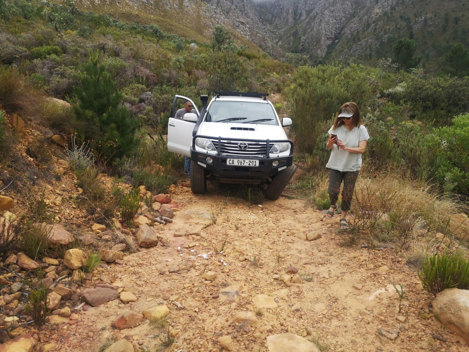 I have not been on a challenging 4x4 route for some time. Long enough to have forgotten how long! But one of the real advantages of joining the 4x4 Cape Club, is that every trip has a designated guide and safety officer, and everyone is willing to help. On this trip, Ashleigh walked (literally and figuratively) many extra miles to make sure that everyone (including myself) got through the challenging bits safely. Unfortunately, he also got a mouthful of sand for his trouble, with my right front wheel in a patch of loose gravel, a sharp corner to navigate and LOTS of power required at the same time. Sorry Ashleigh! Fortunately there were no hidden rocks in the mix at that point. We had a giggle about it, but it is a lesson I will remember – it is not just the back wheels one has to be aware of when outside or behind a moving vehicle – a spinning front wheel can be just as dangerous!