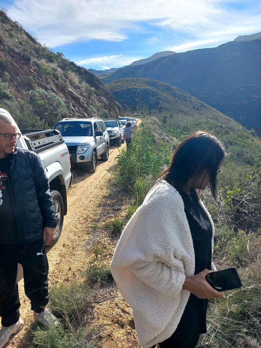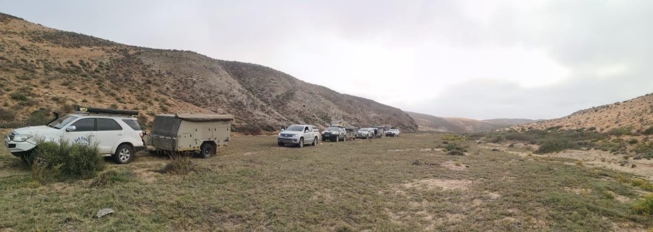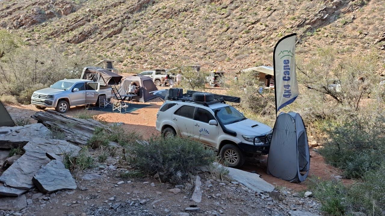 By 10:00, the convoy rolled out, heading toward their first destination—Tierhoek campsite. With no ablution facilities at this rustic site, campers had to be resourceful, armed only with a spade and toilet paper. The rugged conditions underscored the remote and untouched nature of the trail, making their first night a true outdoor experience. The evening ended around the campfire, with a shared braai (barbecue) and stories of the day’s journey.