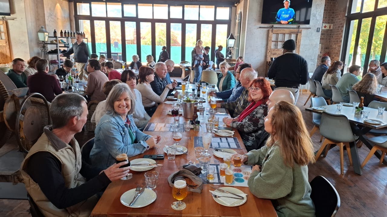 Our planned lunch at Calabash turned into more of a pit stop — the reserved table mysteriously unreserved, and the only option was the patio (which, in that weather, was a definite no-thank-you). A quick scan for alternatives led us to Bergsig Bistro just down the road, where luck was on our side. Warmly welcomed, we settled in, and before we knew it, we were happily wined and dined well into the afternoon. Ladies were all graced with a perfect red rose to celebrate Women’s Day, thanks to the 4x4 Cape Club.