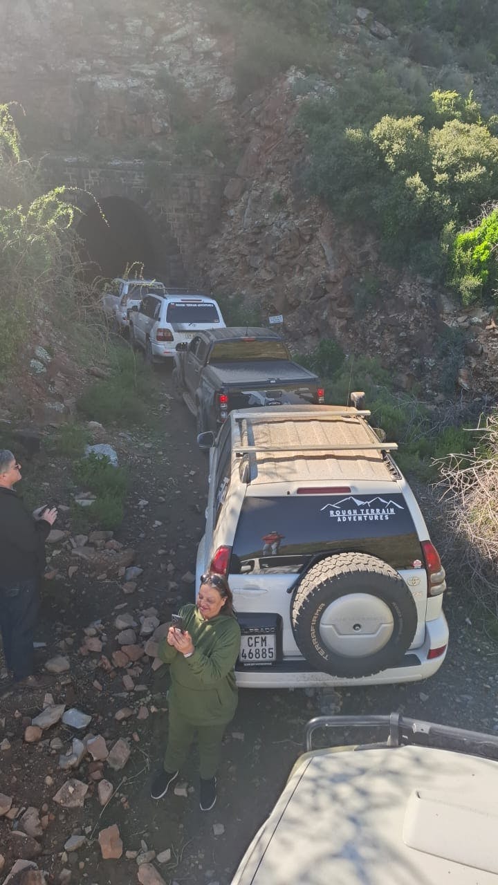 Some lucky members of the Cape 4x4 Club were already at Leeuwenboschfontein before Friday. For some of us traveling, it turned into an exciting adventure, as the tunnel was closed due to some crucial system breakdown. While some diverted through the service tunnels (huge, dark, unlined and wholly eerie-exciting) others were diverted off the closed N1 to make their way over Du Toit’s Kloof Pass together with the entire week-end tourism and transport traffic. If it were not for the impatience of some VIP-drivers, this would have been an awesome opportunity to view the mountain really close-up at tortoise speed.