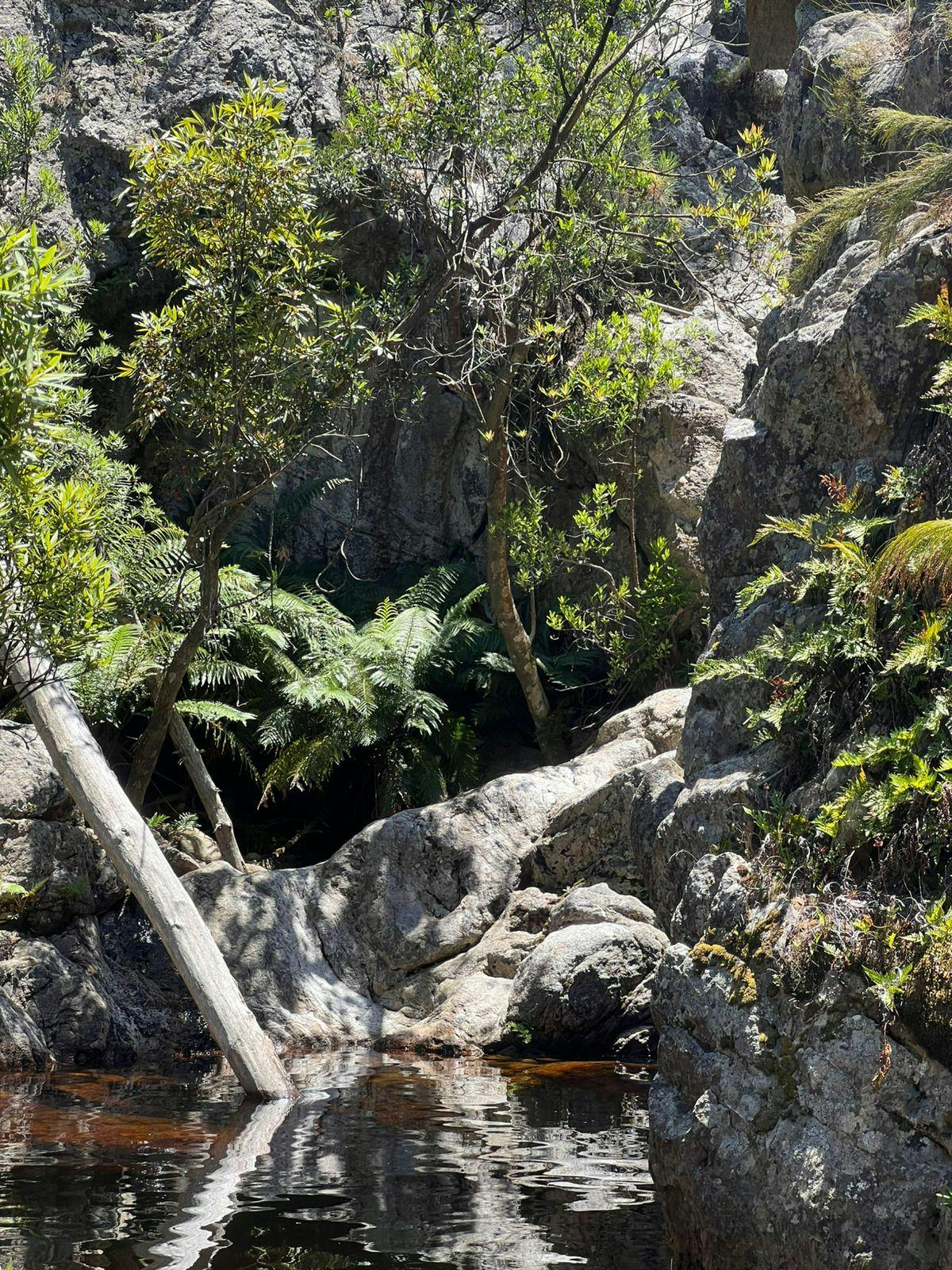 The last stretch was a steep and challenging but not dangerous section, culminating in a breathtaking view from the top of the mountain. Having left all the planned refreshments behind in the Stallion, and with the sun beating down in a very summerly manner, our stop was not very long, and we gingerly made our way back towards more level ground. Luckily for both of us, the Silver Stallion’s spirits had lifted by this time, and we all made it perfectly safely back to camp for a welcome swim, quick lunch and a much-needed rest.