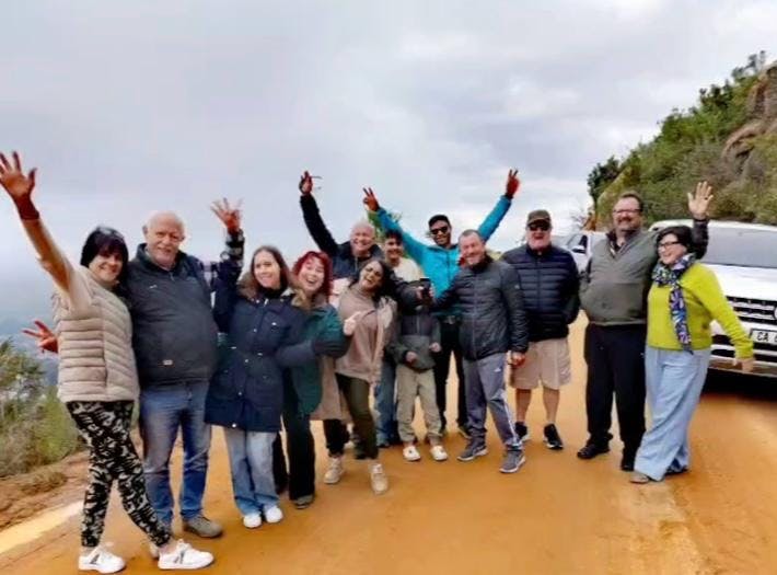 On the way home, we had grand plans for a pit stop — a little brandy (for the non-drivers, of course) paired with waffles and cream. But just as visions of golden waffles danced in our heads, the heavens decided to open in full force. With the downpour drumming on the car roofs, we abandoned the idea and pushed on. Still, rain or no rain, it was a splendid outing — the company and laughter made sure of that.